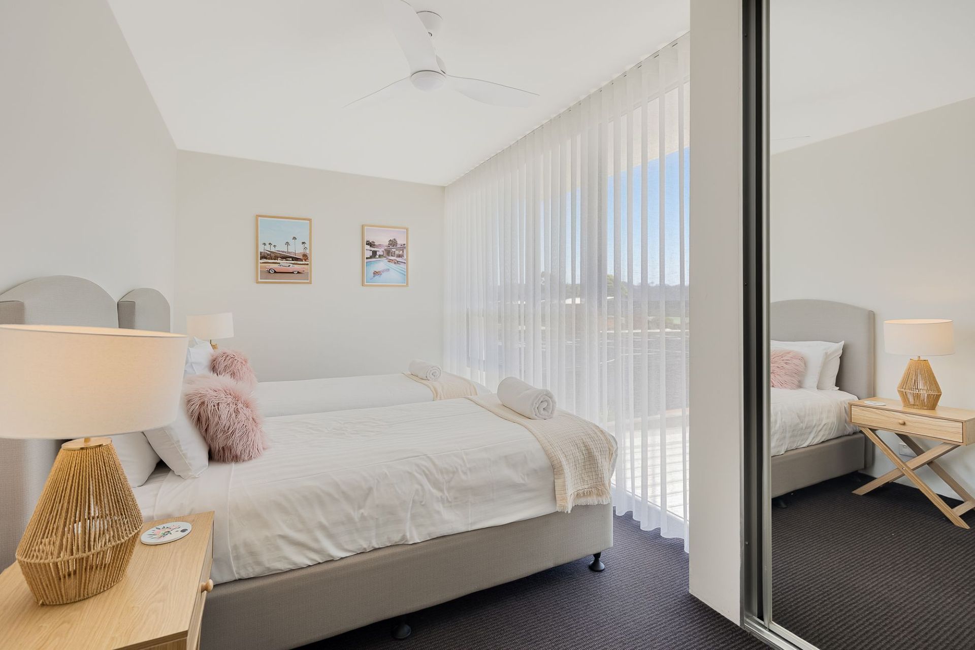 Bedroom 3 is set up with two king single beds and can be converted to a king bed on request.